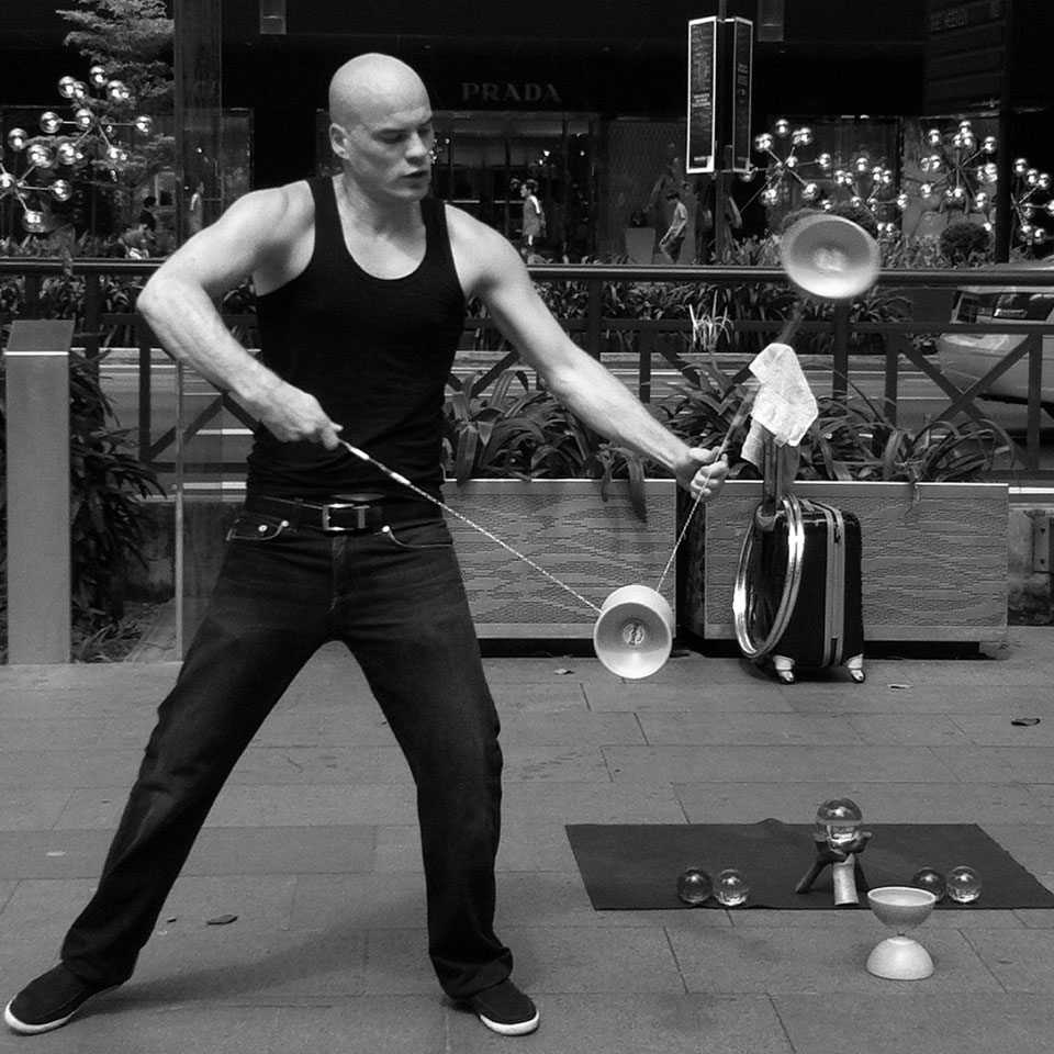 French Juggler Mickael is currently based in Singapore. His juggling props include Diabolos, Crystal contact balls, Fire/Fireworks staff and Contact Hoops. Mickael has travelled and performed in stage and street shows in the UK, Europe and Asia.