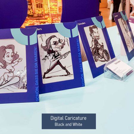 Our Digitial caricaturist is also able to perform pencil drawings, and any caricatures can be tailored to suit any event theme, company or product, and is a great way to ensure event attendees remember the occaision and company!