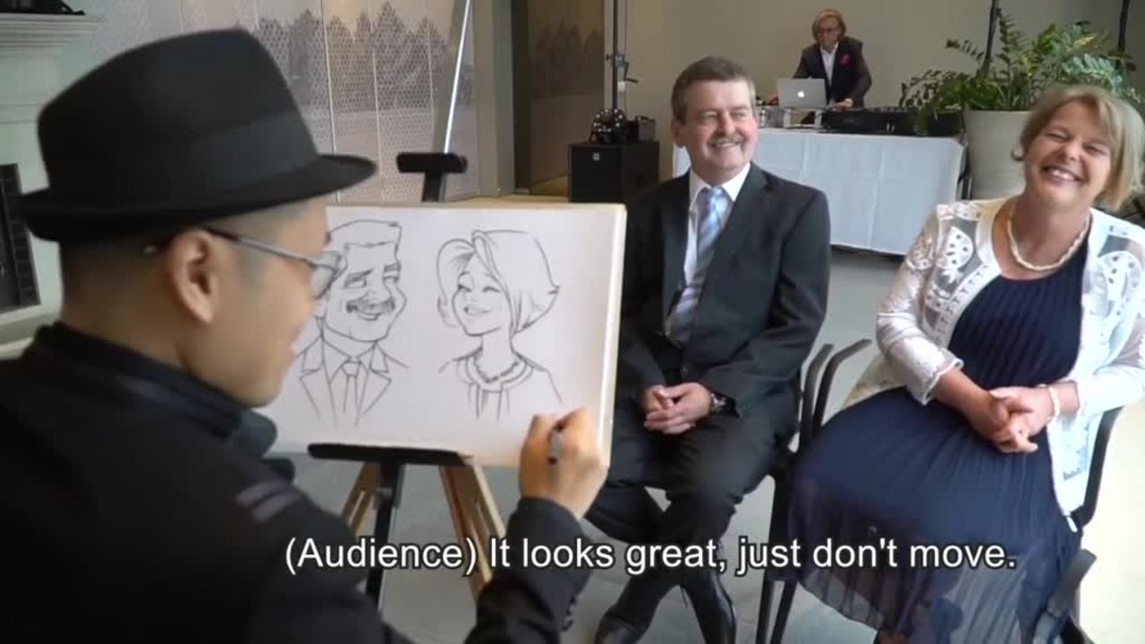The perfect corporate entertainment Vienna, our digital caricaturist has performed for numerous high profile clients internationally, hia flexibile performance style has meant he is the go to performer for mix and mingle entertainment! Able to roam a venue and interact with guests, or stay based in one area, he will adapt his style to the personality of each event guest. His humerous illustrations have the perfect blend of exaggeration and spon on likeness!