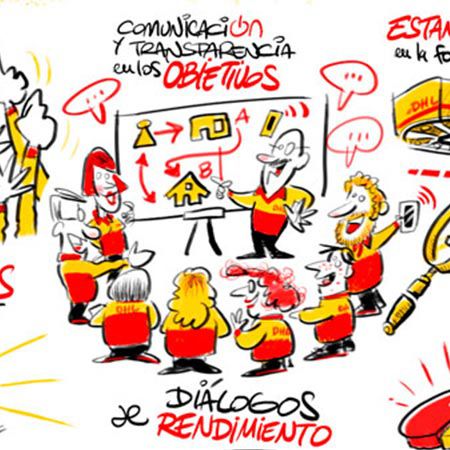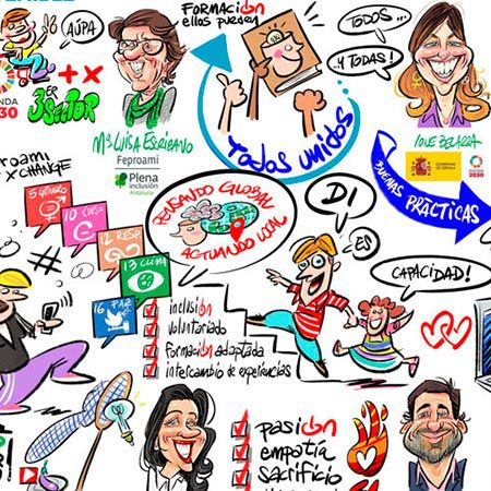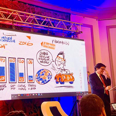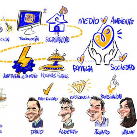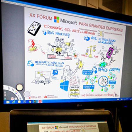For panel discussions and meetings, our artist offers graphic recordings on huge whiteboards or iPads, producing visual narratives