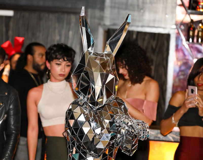 An irresistible photo opportunity for guests and dancers, our mirror ball bunny is the perfect choice for mix and mingle club entertainment. A pro at mingling and interacting with passers-by, everyone will be looking to meet our beautiful strong and silent mirror ball bunny walkabout.