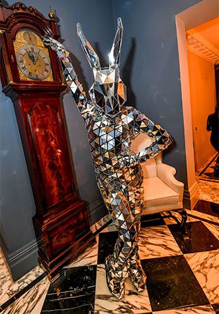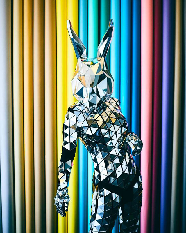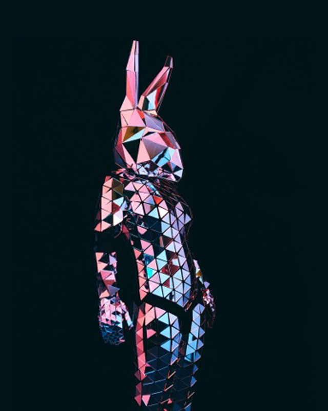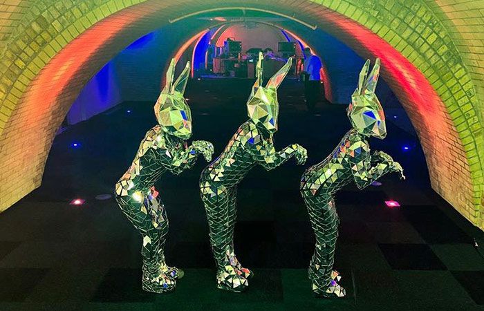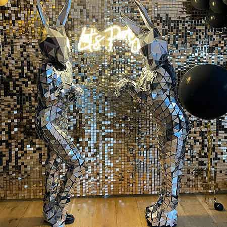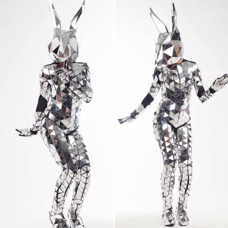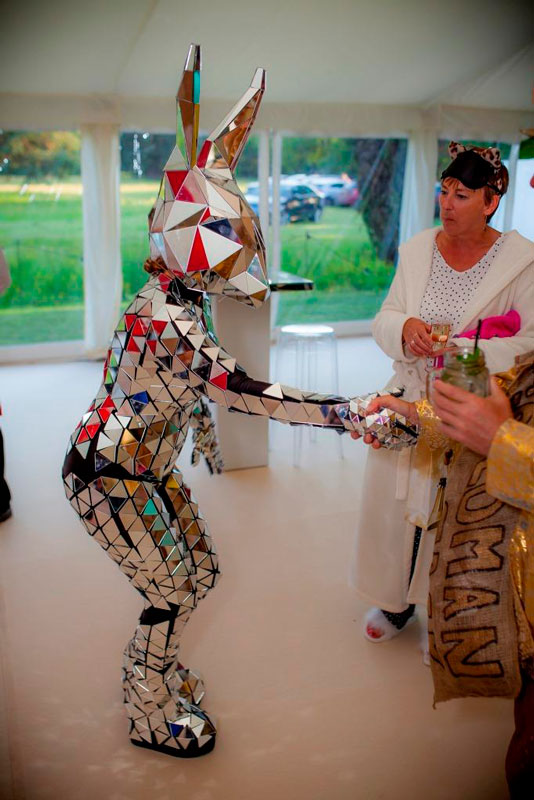 Dressed head to toe in sparkling fragments of mirror, our stunning lady bunny walkabout is sure to turn heads. A highly visual and eye-catching costume, our bunny walkabout’s exceptional reflective outfit will catch the light and throw glittering illuminations across your venue.