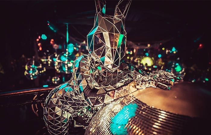 A sophisticated take on glitzy club entertainment, our silent mirror ball bunny will interact with guests and lead the dancing to get everybody on the dance floor partying the night away.