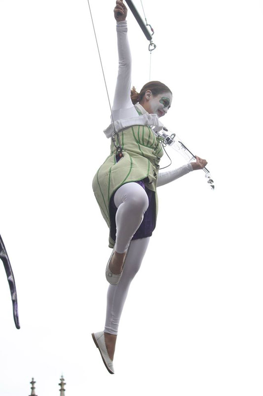 Our aerial violin act can be performed solo or as a trio and works equally well as a captivating act for theatres and events or as a stunning visual attraction in receptions or corporate functions. This unique wind up doll act is full of character and will spark the imagination of your guests as our talented aerial violinists perform as life sized dolls, spinning and revolving and even playing upside down.