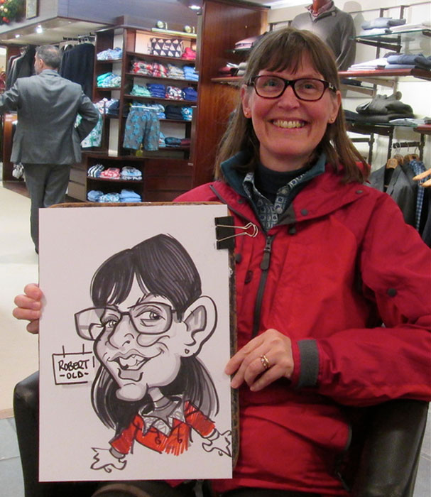 Requiring very little space, our caricaturist can set up any almost any location, inside or out, a very quickly get to work on drawing your guests