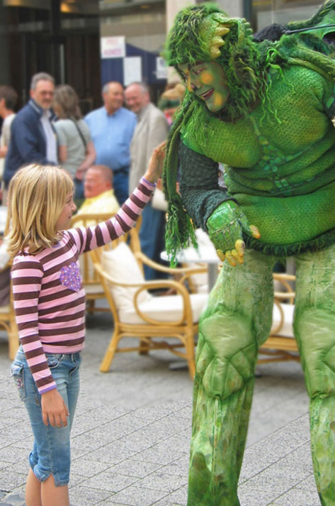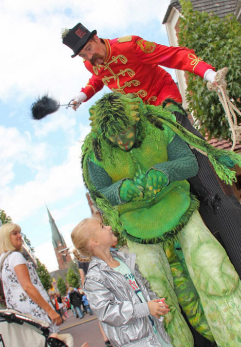 Our fantastic dragon stilt walker leaps and prances around his tamer, attracting the attention of kids and adults alike, providing a host of entertaining meet and greet opportunities, our roaming characters come prepared with a host of prop toys and visually appealing costumes that will help immerse the interactive entertainment experience itself. A stilt act that is a fast paced spectacle and features sparkling wit and humour. Stunning walkabout entertainment and spectacular acrobatics and breath taking surprises help our stilt act take the reigns and keep your guests energised with laughter.