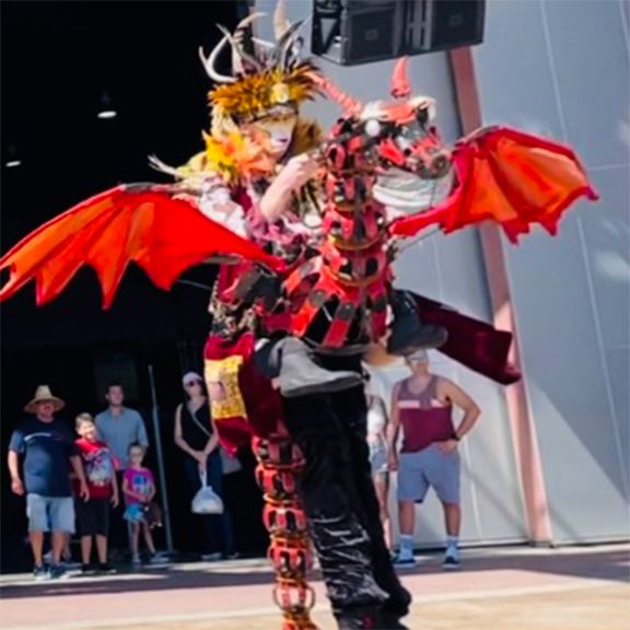 Based in San Diego, California, our dragon stilt walkers are available to book for events across the USA
