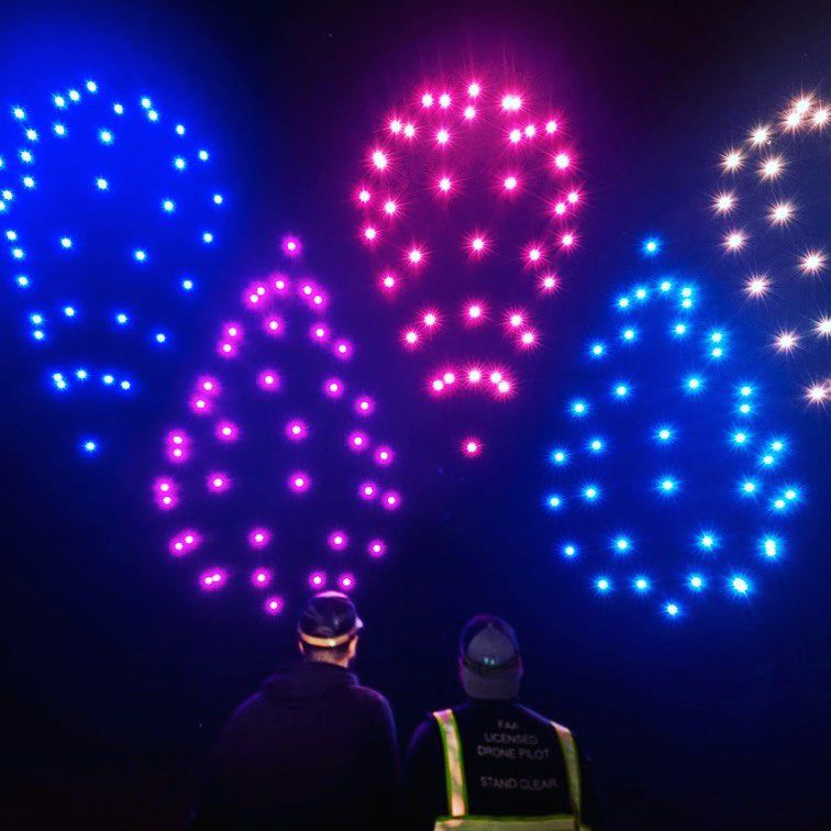 Our US Based drone show team are available to produce large scale drone displays for logos and brand reveals