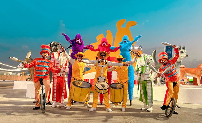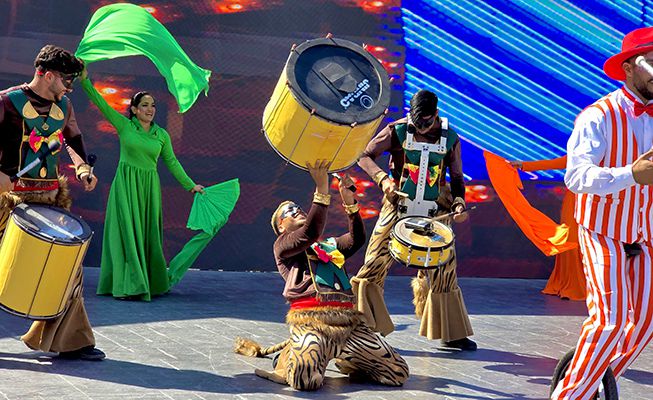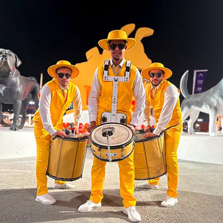 A walkaround band offering themed shows complete with custom costumes, ideal for corporate events, street parades, and large-scale productions