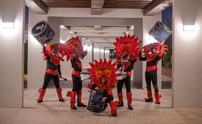 Adding flair with coordinated movement, energetic dancing and vibrant singing, these drummers deliver immersive live entertainment for any crowd