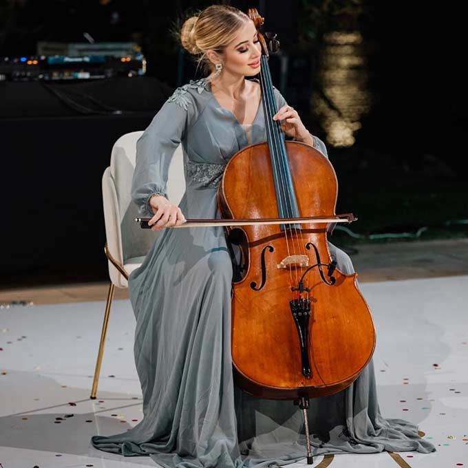 Our cellist performs perfect live music for conferences, private parties, VIP events, company functions, cocktail receptions and gala dinners