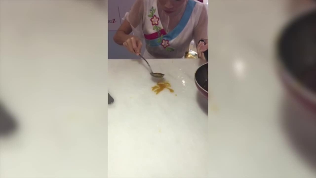 Sugar painting is a traditional Chinese folk art using hot, melted sugar. Our really talented sugar artist creates food sculptures by drizzling the melted sugar onto white marble or metal. Starting with a thick outline the sugar artist can create a large variety figures. Staple Chinese folk art figurines are a dragon, phoenix and rabbit. The final stage of the food sculptures involves attaching a thin wooden stick so the customer can hold it.