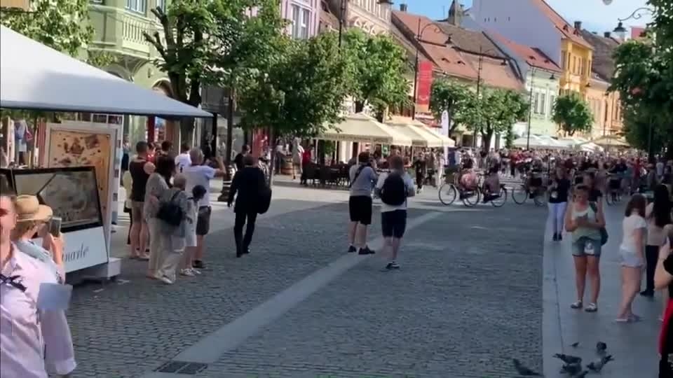 A full Dutch marching band that plays whilst riding on bicycles and creating amazing formations