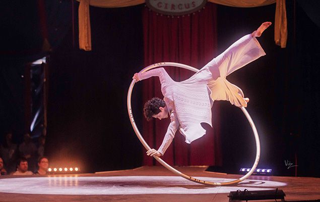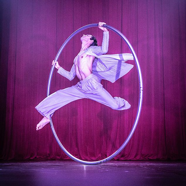 American circus and movement artist specializing in cyr wheel, blending gymnastics and dance to craft innovative, boundary-pushing, captivating work