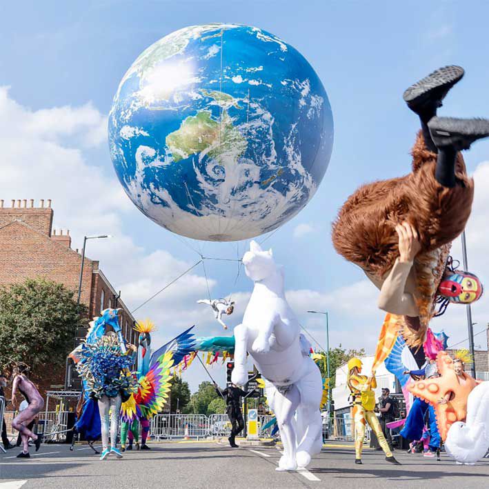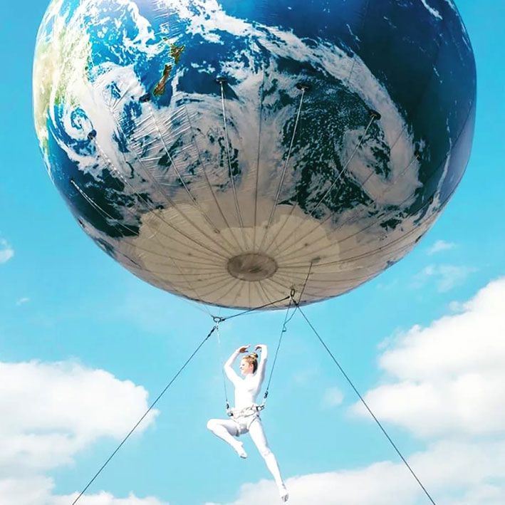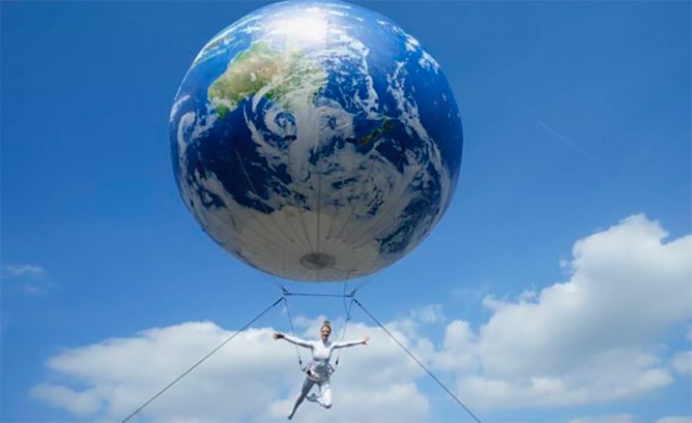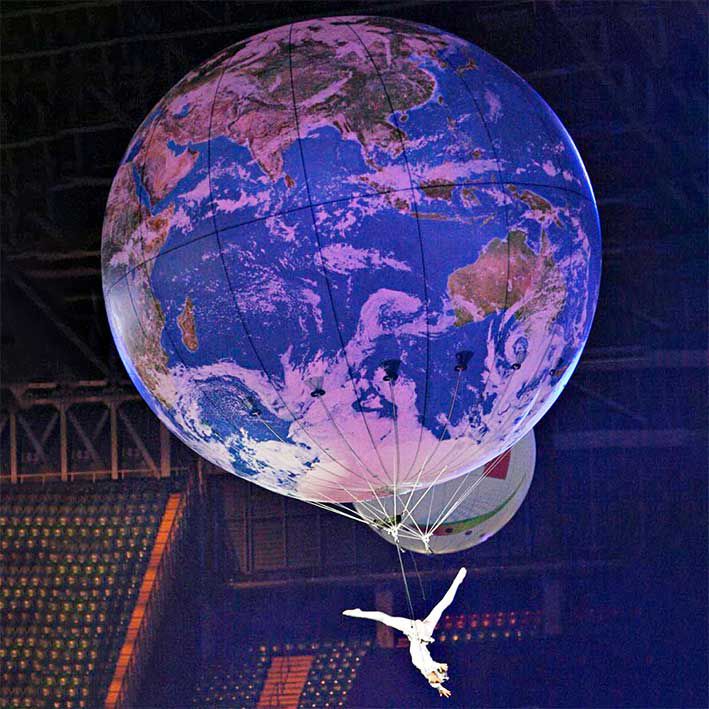 This giant helium balloon, made to look like the globe has a professional acrobat suspended beneath and adds a wow factor to any event!