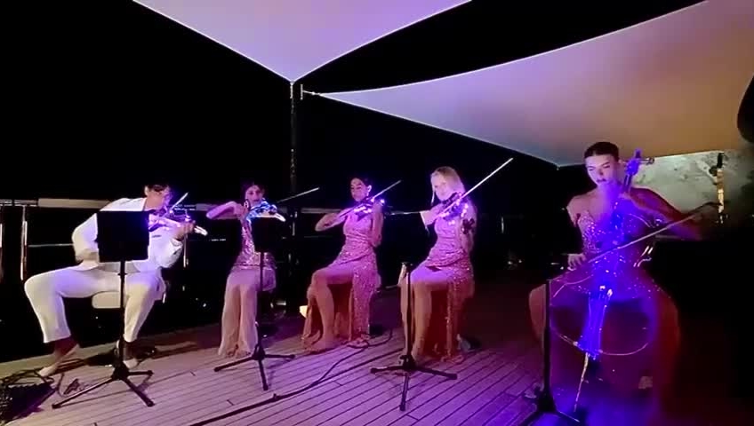 An example of stage shows includes entering the stage to the Rocky theme whilst dressed in yellow boxing robes. The string ensemble then delivers a high impact show finished off with the Zorba Dance, a song that gives a chance to get the audience involved by clapping along, creating a great atmosphere with audience participation.