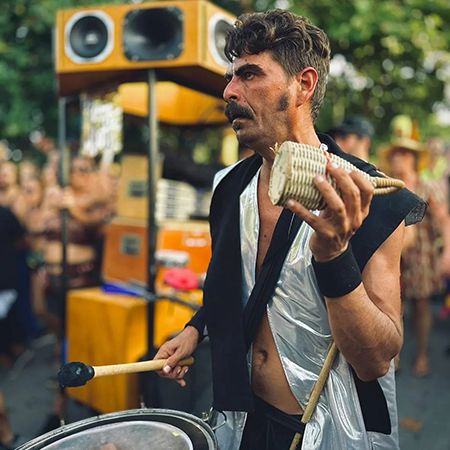 Blending Rio’s street band traditions with cutting-edge electronic sounds, this parade band can perform on stage or move freely among your guests