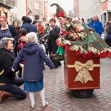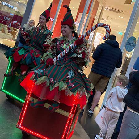 Fear not, our festive elves are literally on the case and are riding the escaping presents back to the workshop in this fun walkabout act