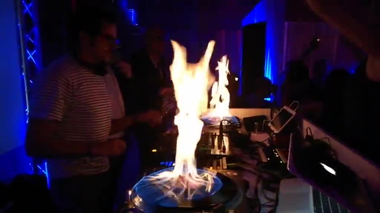 Known for his party trick of literally setting the vinyl on fire, he brings an exciting level of theatrics to his performance