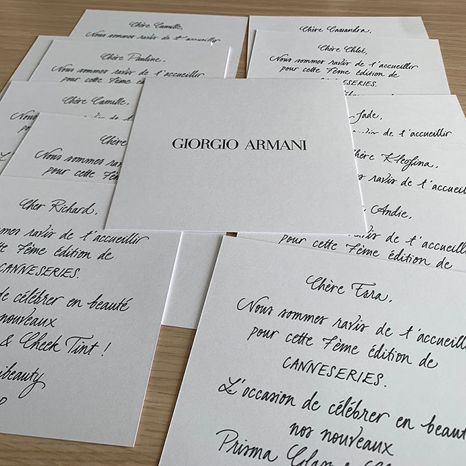 From table cards and place settings to gift tags and envelopes, she can create tailored designs in multiple styles, both handwritten and digitally