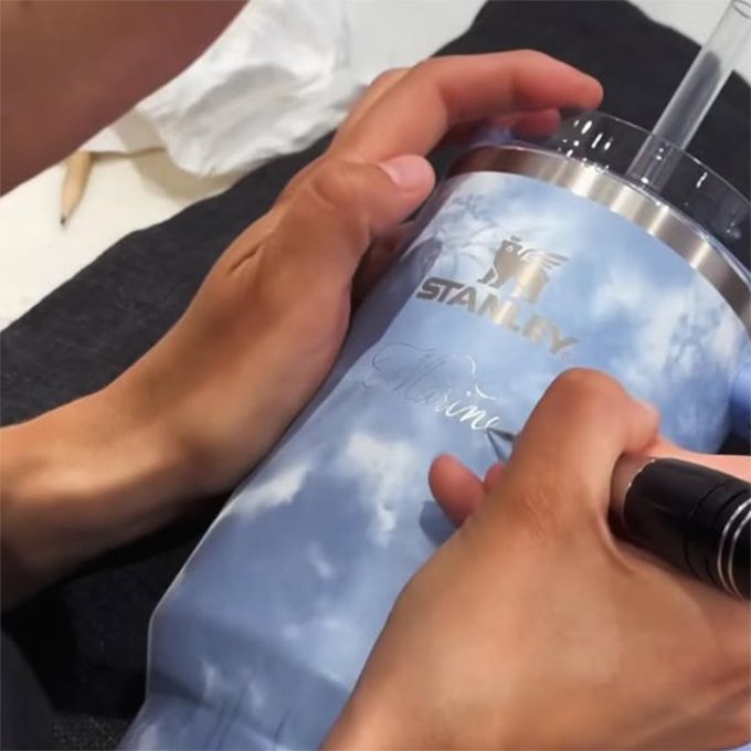 This calligraphy artist can engrave glass, metal, or champagne bottles, adding a bespoke touch to gifts, décor, or other keepsakes