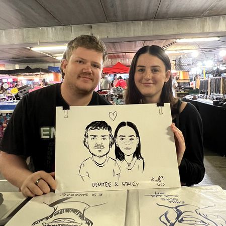 Our traditional caricature artist is a wonderful addition to weddings, private parties, corporate celebrations and instore activations