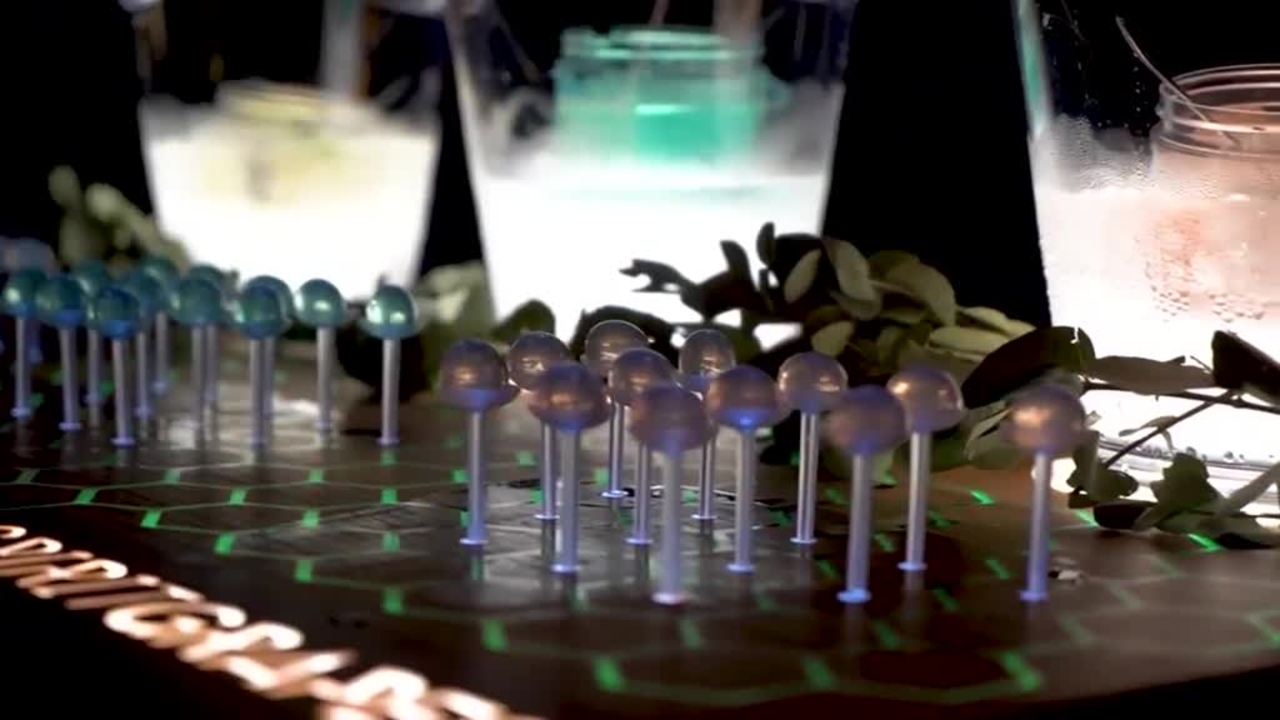 Our 2.5 cm diameter cocktail flavour pearls are completely liquid on the inside. Each guest can enjoy up to six cocktail grapes. The sensations and flavours experienced during tasting will be described by a group of mixologists, who will also explain the quality of the ingredients used.