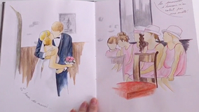 " I wanted to amaze the newlyweds, by offering them a unique and original present … and I met [her] during an exhibition! A truly talented artist! She has proposed me to paint all the important moments of the wedding in watercolors, and to group them in an album that I would offer to the newlyweds… I had finally found THE original and artistic gift that I was looking for! The result was magnificent, touching and unique! [She] creates watercolours with her very personal own style and signature. She establishes harmony between her painting and reality. Offering an original painting, in which we can relive those moments of happiness through the artist’s eyes, is something unique! "