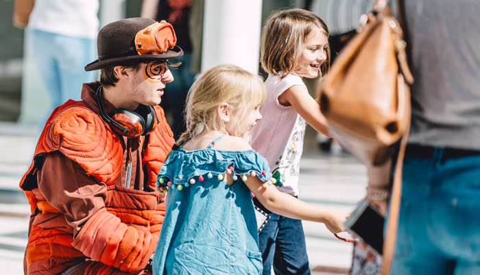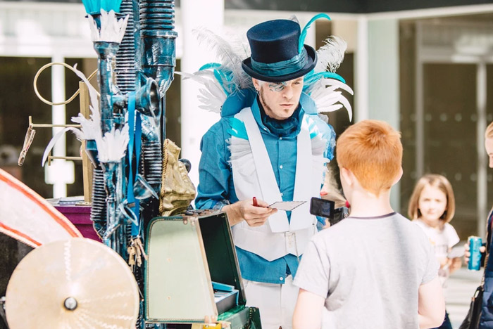 Immersive street theatre experience orientated around a wacky vintage-inspired mobile device