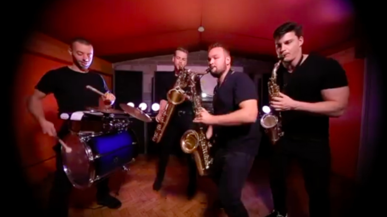 Featuring an alto-soprano saxophonist, tenor saxophonist, baritone saxophonist and custom drum kit for lively sets with toe-tapping rhythms