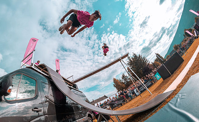 Watch in amazement as our incredible extreme sports athletes perform a range of stunts, tricks and flips