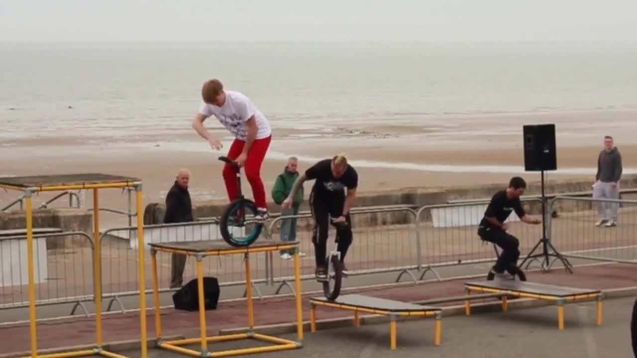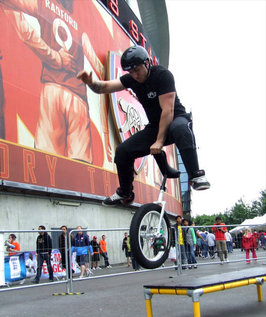 Extreme Unicycling is like BMX biking but on one wheel. Tricks are performed using obstacles found commonly in an urban environment. They take the skills perfected in the streets and bring them to events across the country using our custom built display rig which simulates the urban playground.