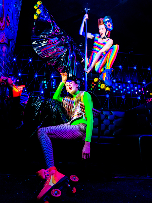 An exciting and fun fusion of roller skating, 70s dance moves, flamboyant outfits and disco beats