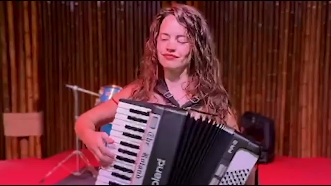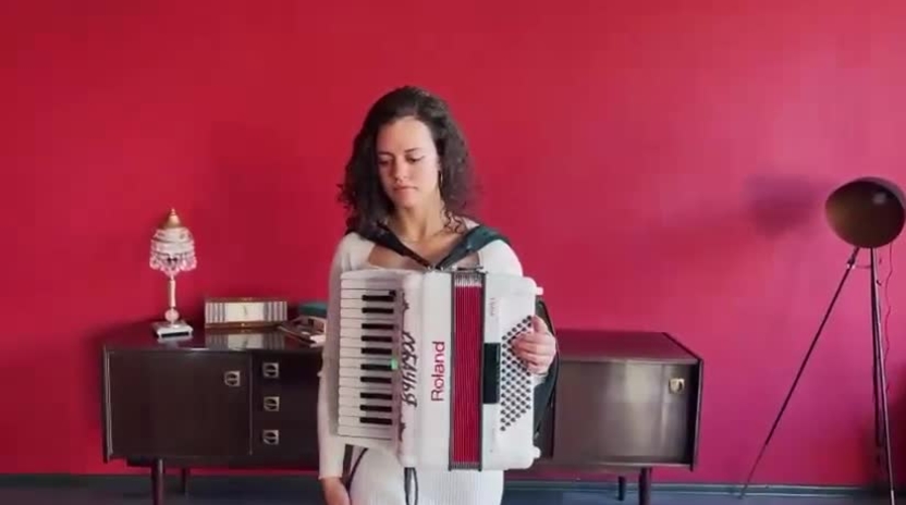 Bringing a modern twist to the traditional accordion, this female musician plays contemporary covers from metal and rock to modern pop