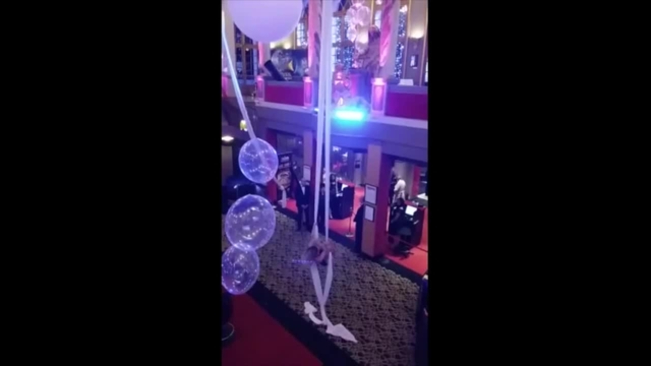 - Aerial Silks: A truly beautiful aerial discipline, the performer climbs and hangs from the ceiling of a venue from a long ribbon. Ideal for any classy function, our aerialist gracefully demonstrates eye catching postures.
