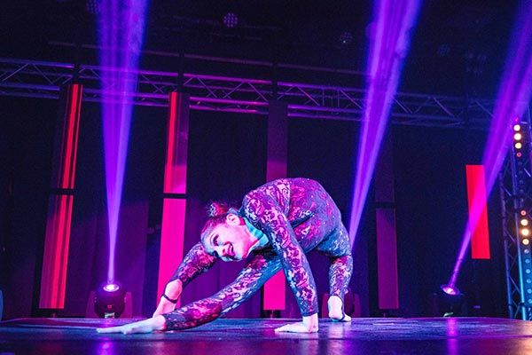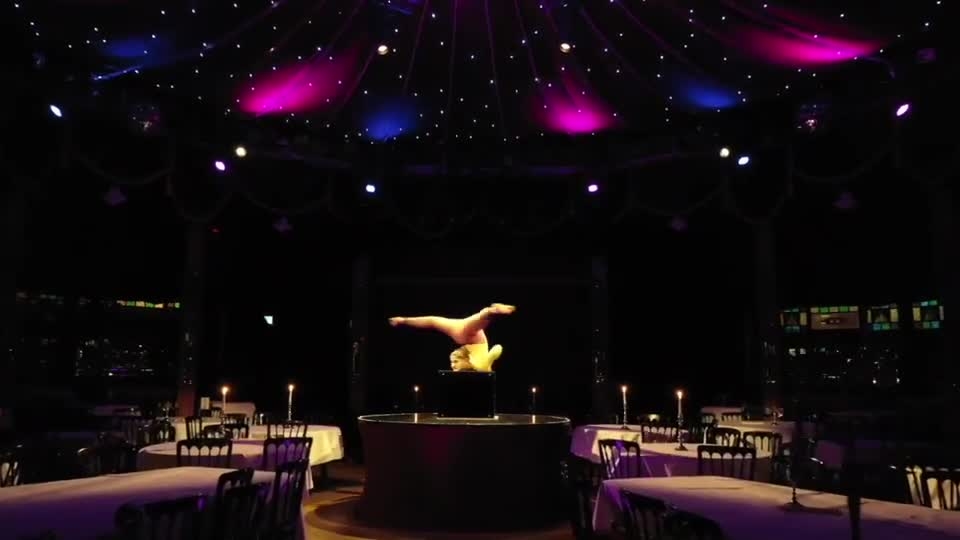 Female contortionist known for her fluid routines performs high-impact, one-of-a-kind shows on a spinning cube!