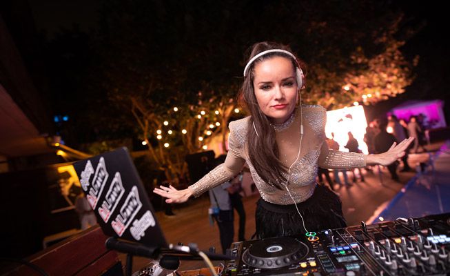 Our fantastic female DJ boasts a talent for mixing music and high fashion, rocking the decks and getting guests up on their feet