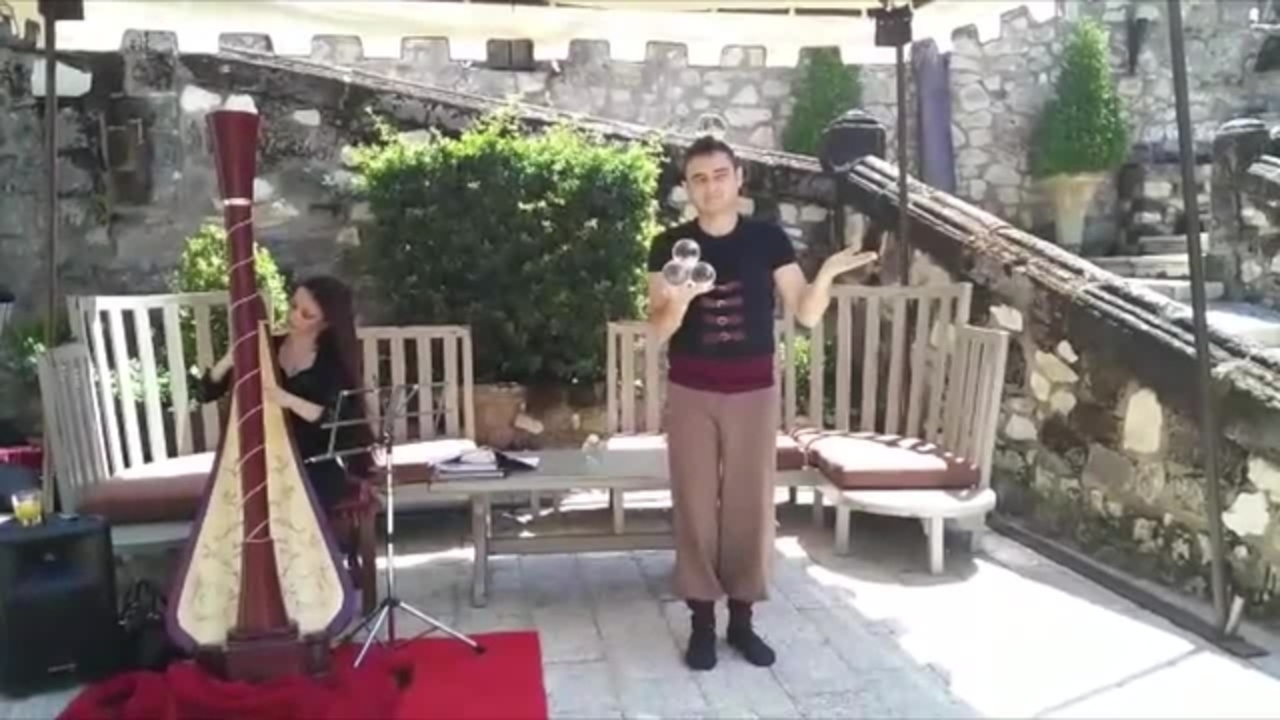 This female harpist is a brilliant choice of elegant live music for the likes of wedding ceremonies and luxury functions either indoors or outdoors. As you are able to see in the videos, she regularly performs with other musicians such as bouzouki and violin players.