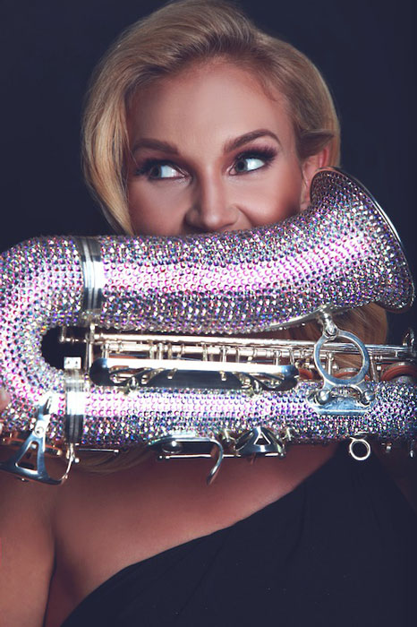 Contact us to book the saxophonist with her Swarovski Crystal instrument for events all over the UK and the world.
