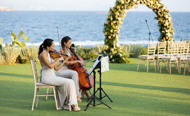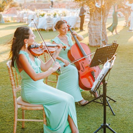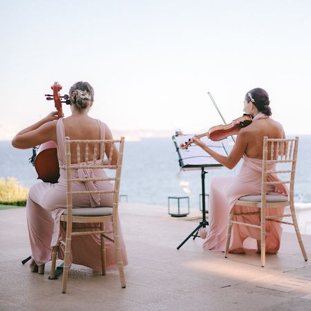 This Greek string duo’s repertoire is divided in classic string music and contemporary hits. Our versatile musicians can delight classical music lovers with melodies by big names like Bach, Tchaikovsky and Mendelssohn, but they also play modern sounds. Some of the pop songs and contemporary hits they usually play include ‘With or Without You’ by U2, ‘Marry You’ by Bruno Mars or ‘Stairway To Heaven’ by Led Zepelin, to name a few.