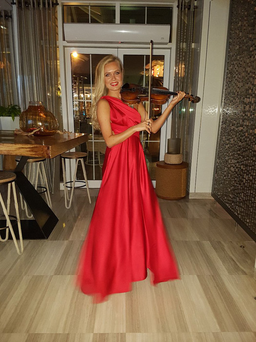 Our Russian female violinist performs with both acoustic and electric violin, creating the perfect set for your event