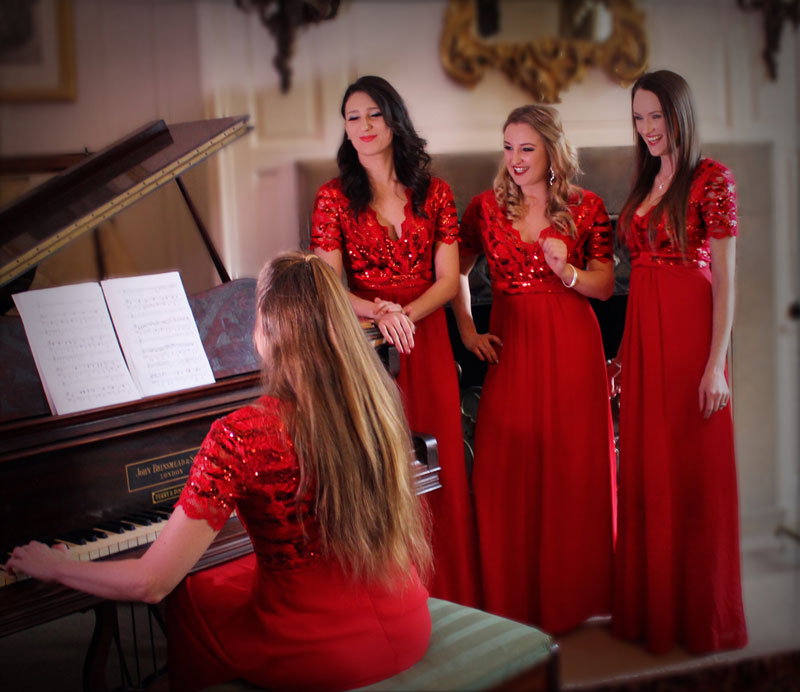 Standing around the piano they create a mesmerising focal point for any soiree. Beautiful as ambient background music as your guests chat, drink and mingle, or as the main event for Christmas entertainment.