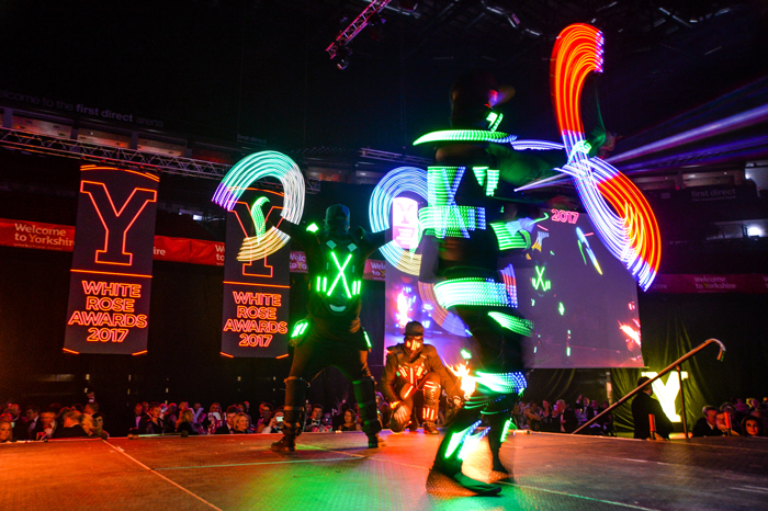 The Fire and LED Dancers UK are guaranteed to dazzle your guests with their utterly stunning dance, fire and LED show with incredibly impressive choreographies. Using state-of-the-art technology in their LED suits they can perfectly sync colour changes with each other and even tailor the colours to a particular brand. The costumes are very contemporary and well suited to, but not limited to, events with younger audiences.