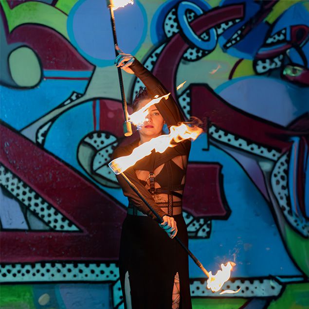 A multitalented fire artist and award-winning performer who blends precision, heat, and artistry to deliver unforgettable fire dance experiences