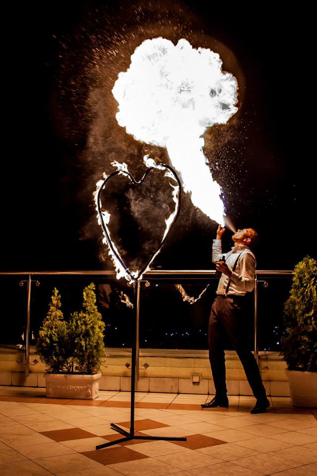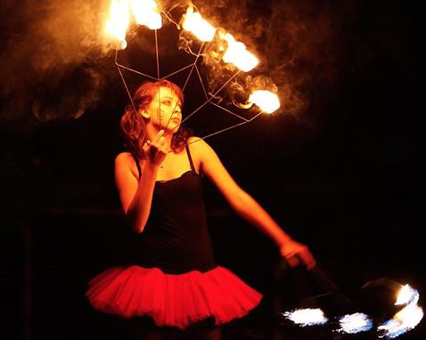 Their high-impact shows features a huge array of fire props including poi, jump ropes, hula hoops, sparks, sticks, pyrotechnics and flaming hearts as well as fire spitting! Dynamic, exciting and utterly captivating, each show will have spectators gasping in astonishment as the performers expertly wield their flaming tools in a highly choreographed dance.