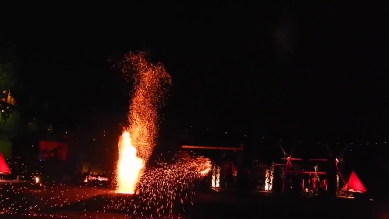 Their fire show can also take the form of a comedy with two characters bickering as they try to make their way back to their stranded airship… with lots of fire tricks along the way!