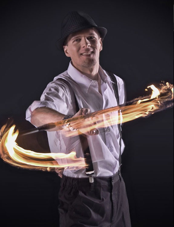 Our Jazz fire show are best booked to perform in darkness to make the flames stand out.