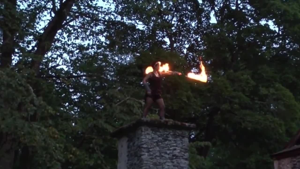 Using instruments that include burning sticks, poi, hoops, swords and fans, she can also perform incredible explosions and magic with a record number of 21 flames!
