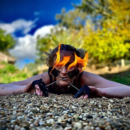 In addition to fire performance, this talented artist specialises in aerial and can incorporate elements of her aerial artistry into her routines