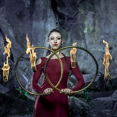 Deliver multi-skilled performances with a variety of props such as hoops and can incorporate aerial sets and LED props in their sets
